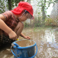 - 少子化と遊びの変化で異年齢の子どもと遊ぶ機会が少なくなっている時代だからこそ、保育園における異年齢の触れ合いはとても大切です。年齢の異なる子どもが一緒に活動することで、年下の子どもに接することで思いやりの気持ちが芽生えたり、年上の子どもを見て興味関心を広げたり、違いを超えて人間関係を築く力が育ちます。